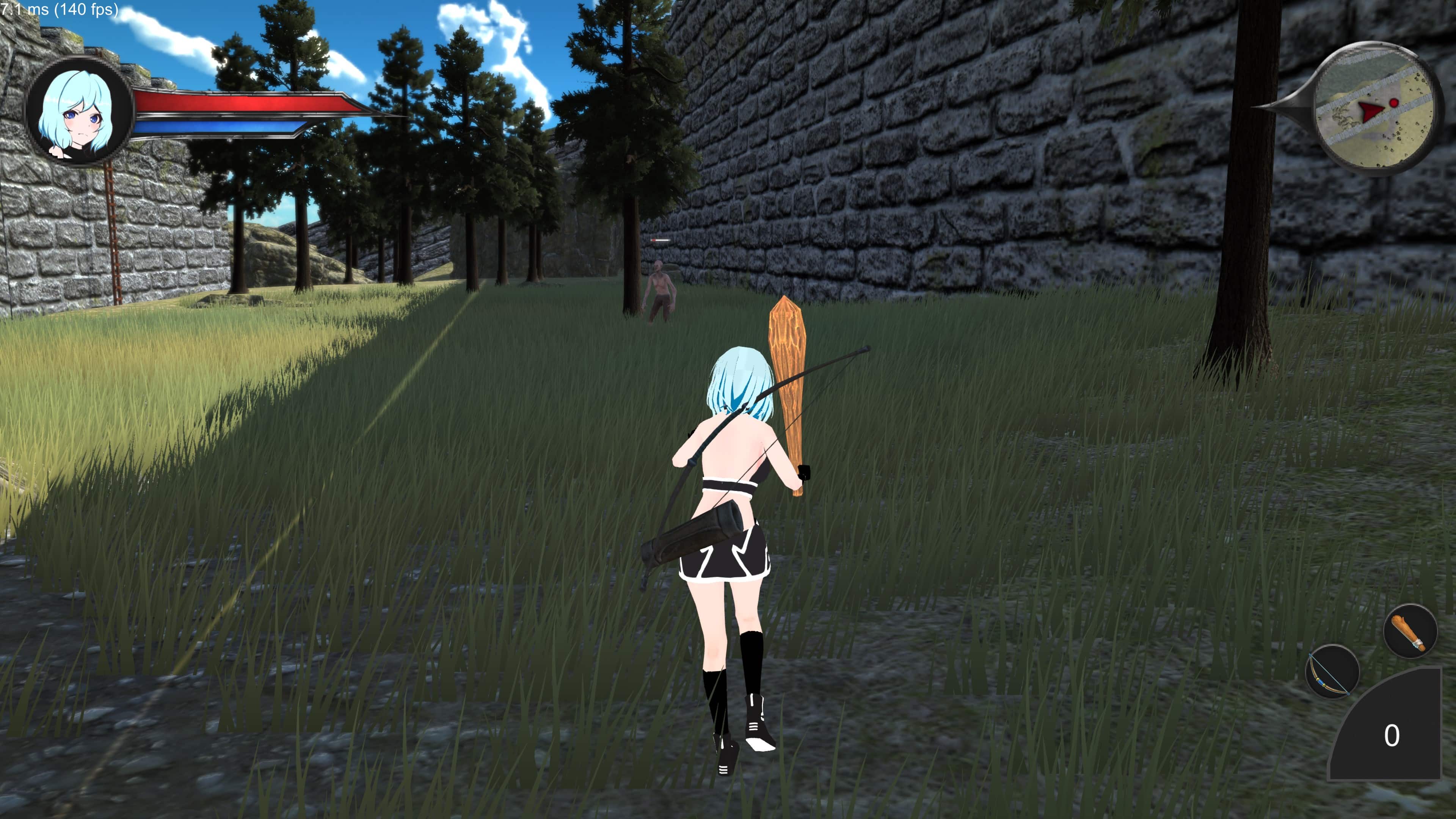 In any case, upon passing through that gate, you’ll come across a zombie. Your bow should make short work of it and as you crawl through the rock formation located behind it, there you will find a club. It looks overly cartoony to the point that it wouldn’t look out of place in the Flintstones. While everything appears to be free Unity assets, this club is the most out-of-place looking thing in the game. Everything else does have a sense of believably of its belonging in this world. Eh, it is the least of its worries in a moment though. Nearby is a zombie you can test it on which will reveal how melee works here. Whoever hits first will stunlock their foe and be able to wail on his now defenseless opponent until defeated.
