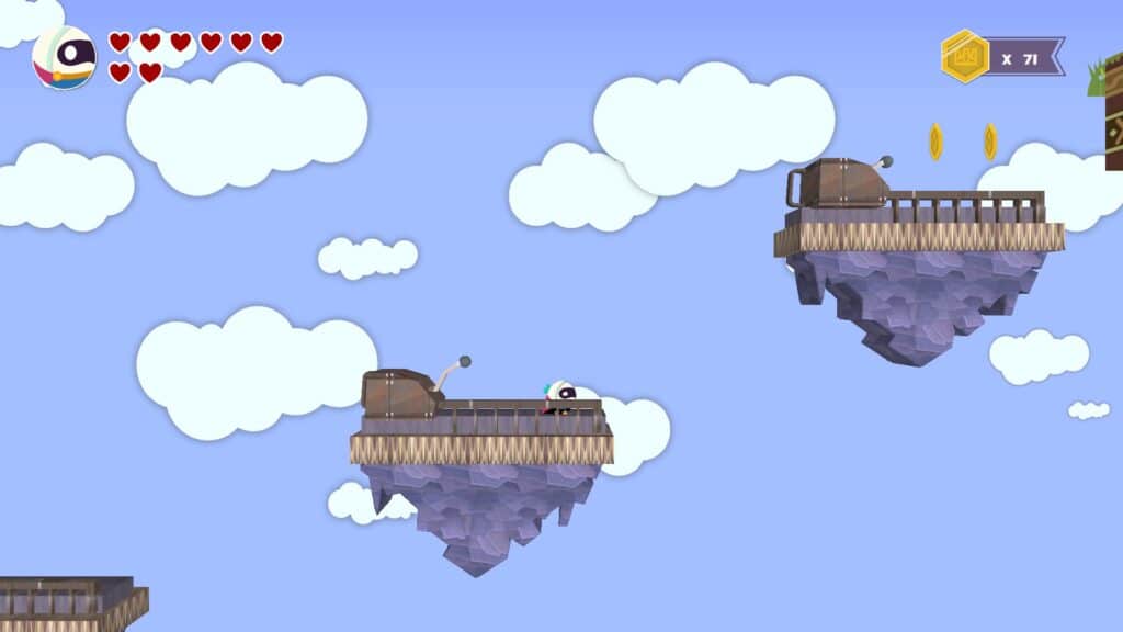 As you can tell from the pictures, this has a nice paper crafted art style to it with tons of color. I really love the look of the game, and each level offers a unique theme to change things up, from colorful forests to platforming inside active volcanoes. Scattered around the levels are the king’s soldiers who serve as checkpoints for when you succumb to enough damage be it from hazards or enemies. It is a cute looking game but don’t be fooled, it offers a decent challenge, and you will need them. There are no limits to the amount of times you can respawn nor are there penalties, so it is charitable in that regard.