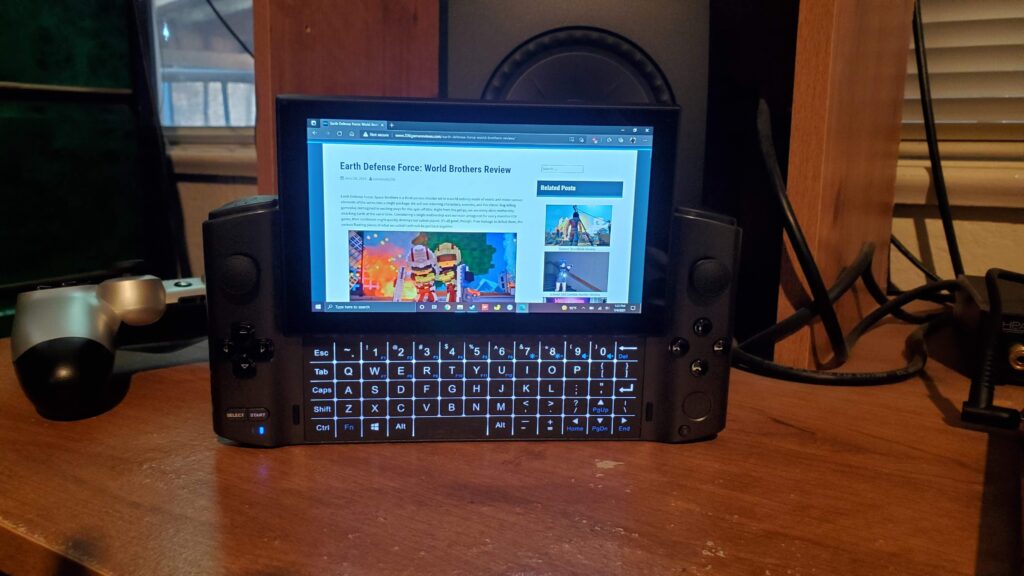 For racing games and shooters, it is mostly fine. The problem arises when you need to make use of the d-pad or face buttons. They are both perfectly vertical from the thumbsticks and found beneath them. It does not make it easy to reach. With how the Win 3’s body is shaped, your fingers naturally end up at the top of the device, and you really have to stretch your thumbs down to access the rest of the inputs. There are different methods you can try holding it in your hands, but none that I’ve found have made both the triggers and buttons easily accessible. The screen doesn’t sit flush with the rest of the body to add salt to the wound. It sticks up a good deal, and with how close the d-pad and buttons are, it will get in the way as you try to press those nearest to it. I have big hands and find it tolerable, but others that have tried this device have found it too awkward to use for long. This is kind of a deal-breaker as one can’t exactly try it out for themselves since this is such a niche product that a friend is unlikely to have one just lying around. As soon as I get sent the silicone grip GPD is making, I’ll link its review here, not that possibly needing to buy an accessory is a good thing for such a pricey product.