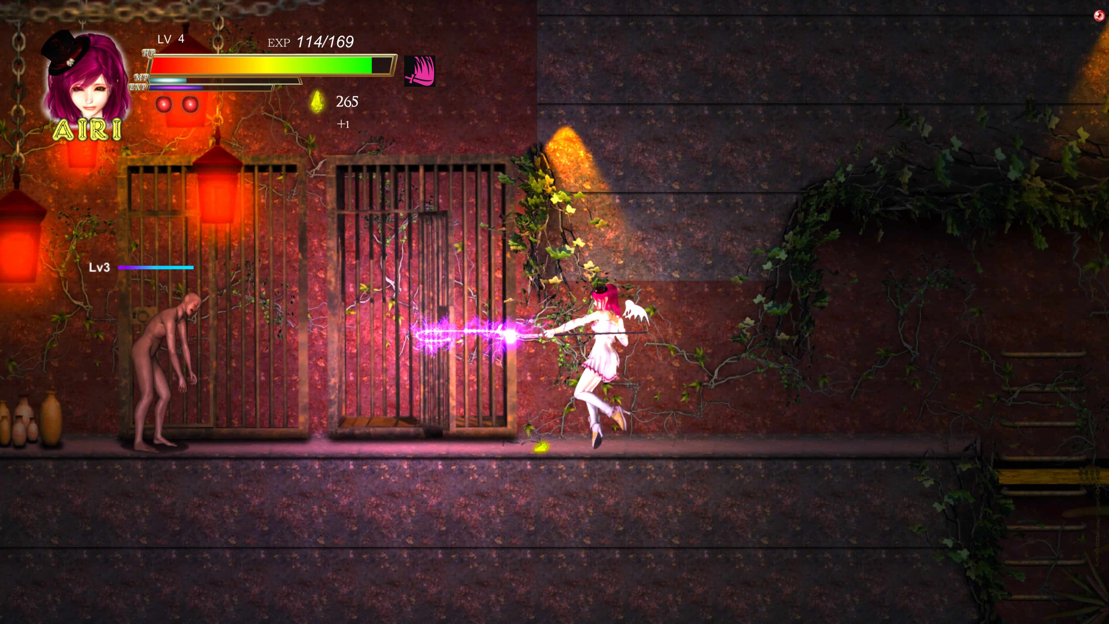 It is one heck of an introduction, and with our character being the goddess who is to save them all, we are set loose. Exiting the house I spotted a small group of three zombies feasting on a fairy, rushed in, and was promptly torn to pieces. This is not that type of game as it was all too quick to demonstrate. The enemy we face are quite powerful and even Airi can not fight them on equal footing. Our main advantage over the undead is our mobility. We can dash, triple jump, and possess a much greater attack range over them. Starting off, we also possess a magic whip spell that pulls a single enemy towards you, as to avoid having to fight a tightly packed mob.