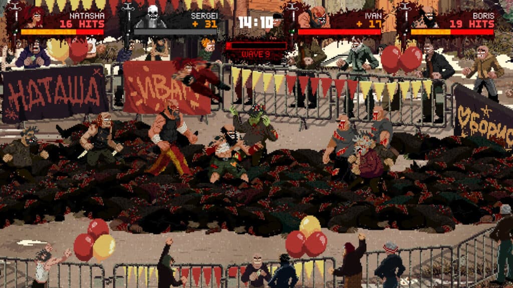 Unless you have friends nearby you will sadly be unable to show off to anybody due to Mother Russia Bleeds only having local coop. It is a blast with others and there is an option to turn off friendly fire for when you just want to quite literally stab your friend in the back. This can be replicated to an extent if you have no one to play with due to being able to add bots though they are not that great at staying alive. It’s a nice addition nonetheless. To spice things up the game may throw you a few curve balls like needing to protect an NPC, dodging sniper fire or leading a group of rebels against the military with mixed results but are rare enough to not be annoying.