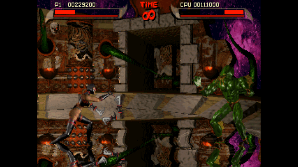Your final single-player mode is unlocked after you finished Story a few times and allows you to play as Death himself. There is also a cheat code to play as the sub-boss Pain, which is awesome as he was the fighter with the most interesting character design in my opinion. That brings the total fighters up to a full dozen. Other modes include three variations against another human foe, if you can find someone to play this with you. There is another set of three tournament modes that is designed for multiple human players, but you can also play by yourself. Final League being the most interesting among them. You do not only fight to try to defeat an enemy, you also try to keep your moves varied in order to score up more points. This keeps things from becoming spamming matches and even if you win every round, you can still lose the overall tournament if all you do is low kick then back away.
