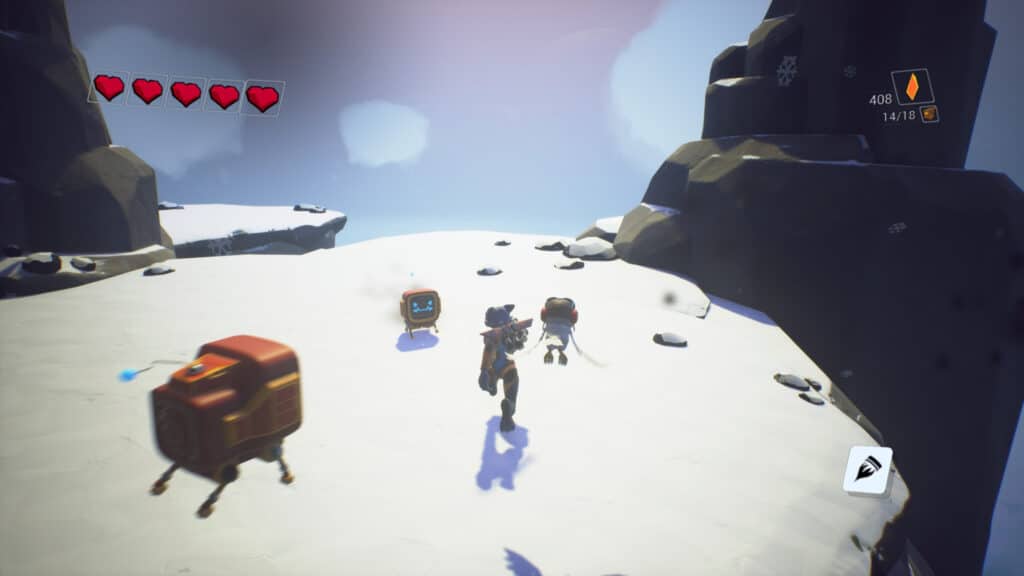 Found at certain locations are terminals that serve as fast travel points to make navigating the map or going back to the Elder for a health upgrade much easier. There are no instant death pits, falling in lava or any other hazard will only set you back a single heart and place you where you were before you fell. If you manage to lose all your hearts, you will be taken back to the nearest checkpoint. I wouldn’t call this title difficult, it sits right between the line of being engaged and being challenged. It is a game anyone can pick up and enjoy while the story itself is family friendly. To break up the platforming and the combat, there will be the occasional simple puzzle that are mostly found towards the end of the game.